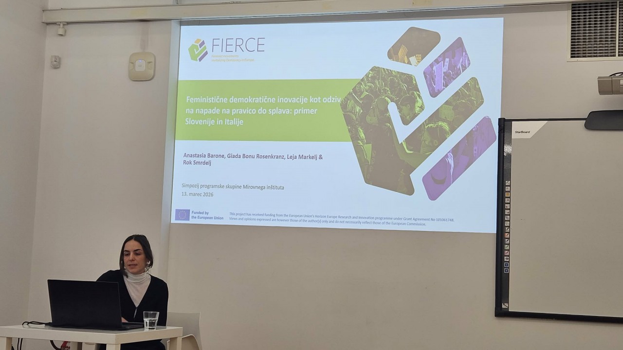 Leja Markelj concluded the symposium with Feminist Democratic Innovations as a Response to Attacks on Abortion Rights: The Case of Slovenia and Italy, examining the strategies of contemporary feminist movements in Italy and Slovenia that respond to informal pressures on abortion rights in the context of strengthening anti-gender mobilisations and de-democratisation processes. Although abortion rights remain legally guaranteed in both countries, actual access is obstructed by numerous anti-gender movement strategies, such as spreading disinformation, systematic use of conscientious objection, discriminatory treatment in the healthcare system, and moralising discourses. The contribution expands understanding of feminist action beyond formal politics and shows how movements strengthen democratic resilience and reproductive autonomy at a time when reproductive rights are increasingly threatened.