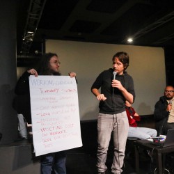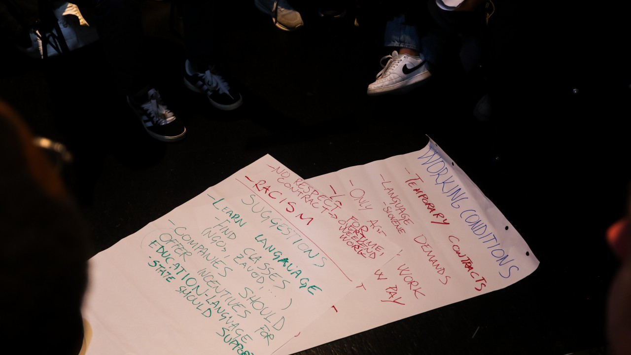 In the second part of the event, participants divided into four thematic working groups: 1. Housing Issues (moderator: Daniel Nzotam), 2. Language (moderator: Katja Utroša), 3. Racism and Discrimination (moderators: Hasan Alhallaq and Moad) and 4. Working Conditions and Labour Rights (moderator: Tadej Pavković).