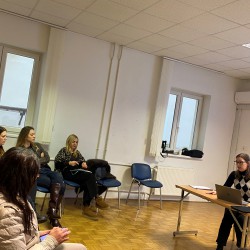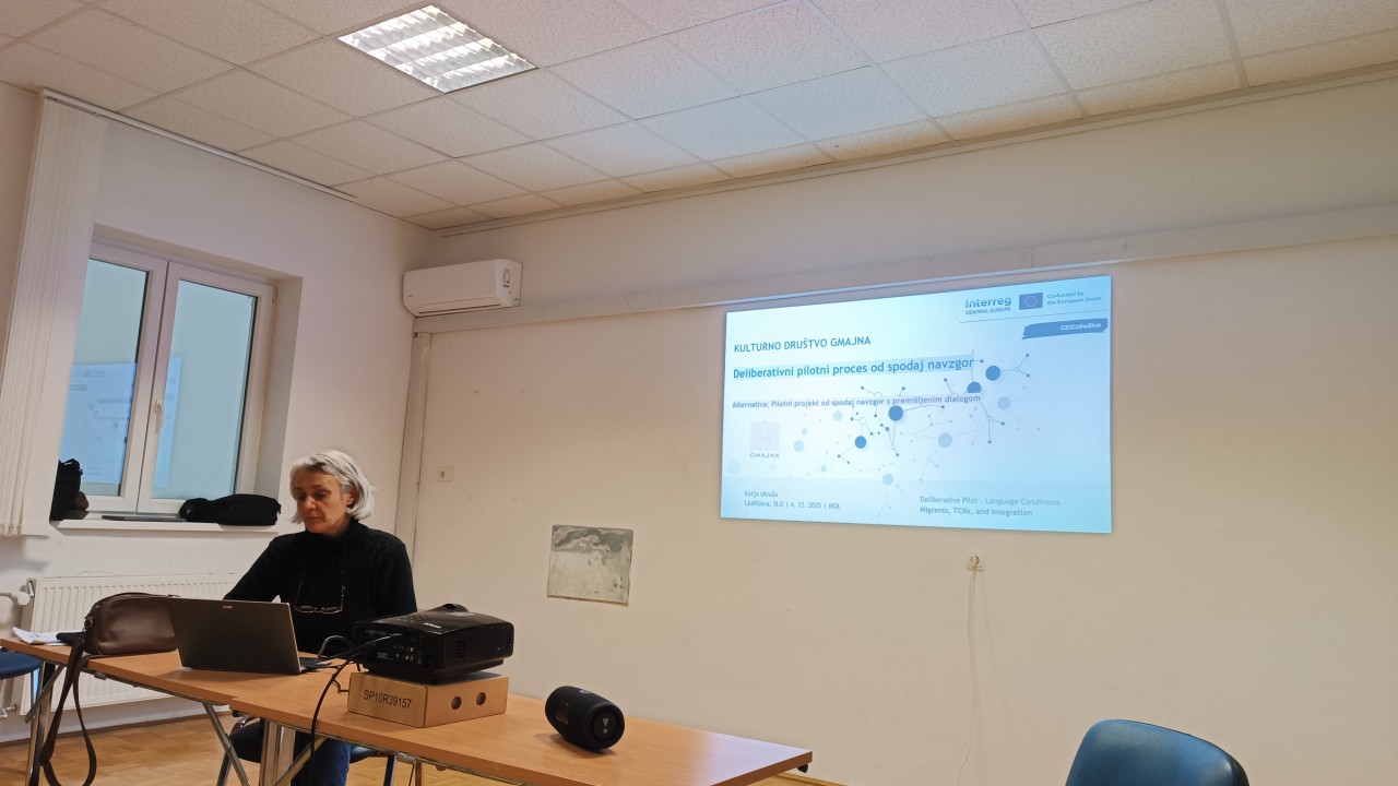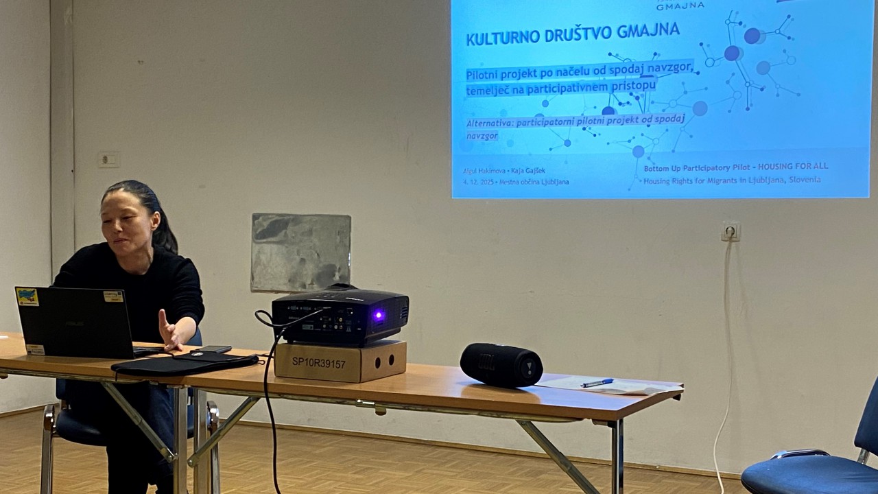 V četrtek, 4. decembra 2025, je v Mestni občini Ljubljana potekalo izobraževanje Kako delati z ranljivimi skupinami in posamezniki na primeru migracij, namenjeno razumevanju pristopov in praks dela z ranljivimi skupinami v kontekstu migracij. Program je bil razdeljen na dva vsebinska sklopa. Prvi sklop je obravnaval oblike sodelovanja z ranljivimi skupinami in posamezniki, pri čemer so bile izpostavljene teme učenja slovenskega jezika med migranti, stanovanjske stiske migrantov na podlagi izvedenih skupščin in intervjujev ter primeri dobrih praks vključevanja migrantov v lokalno okolje Idrije. Drugi sklop je bil namenjen metodološkim pristopom dela, kjer so bili predstavljeni bottom-up deliberativni in participatorni pristopi, ki poudarjajo aktivno vlogo ranljivih skupin pri soustvarjanju rešitev, ter top-down deliberativni pristop, ki temelji na institucionalnem okviru in strukturiranem dialogu z različnimi deležniki. Izobraževanje sta izvedli Aigul Hakimova (Kulturno društvo Gmajna), dolgoletna aktivistka na področju pravic migrantov in migrantskih delavcev, ter Barbara Horvat (Skupnost občin Slovenije), ki se v okviru različnih projektov ukvarja z razvojem vključujočih občinskih praks za migrantske prebivalce.