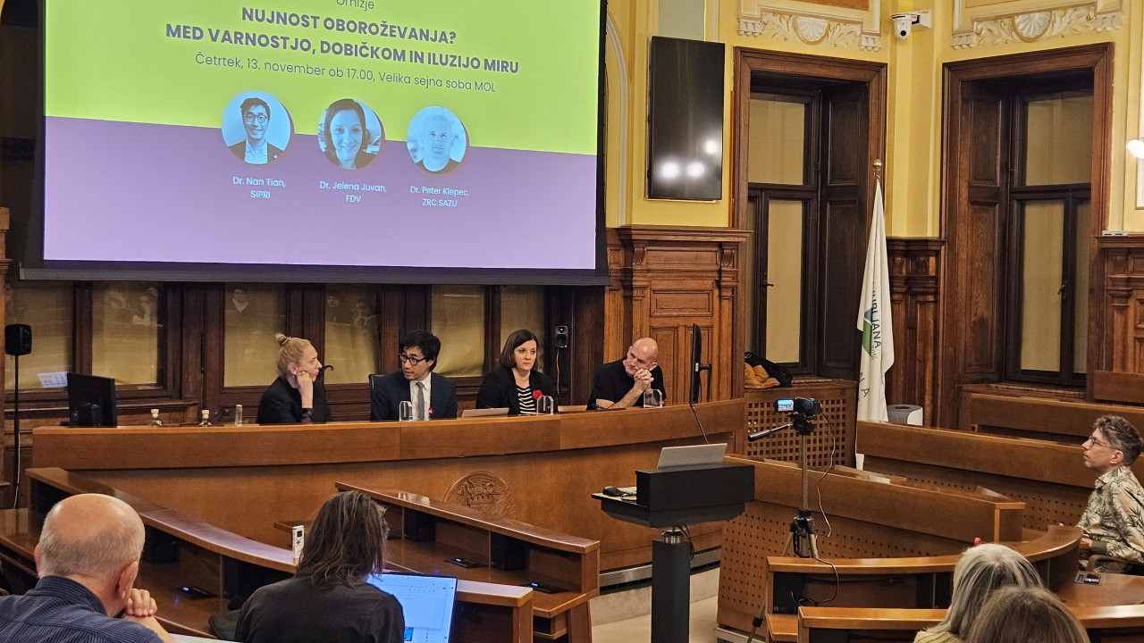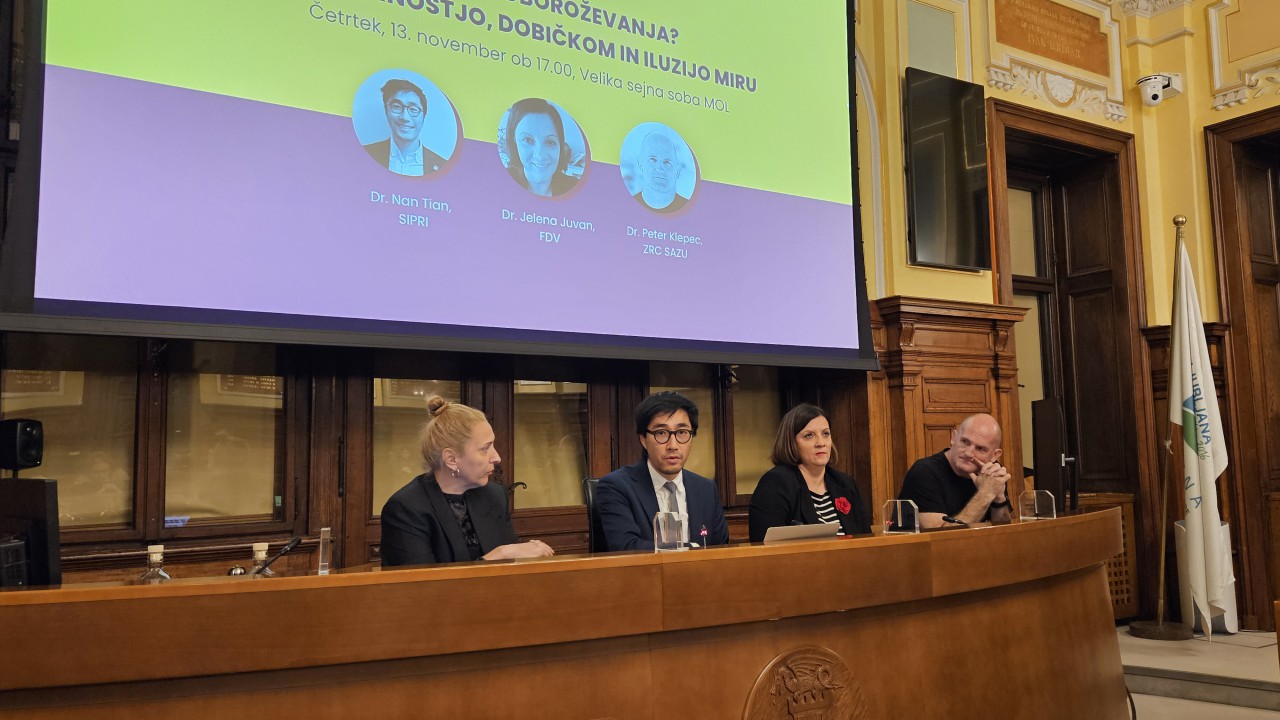 Sogovorniki – filozof Peter Klepec, strokovnjakinja za obrambne študije Jelena Juvan in raziskovalec globalne vojaške porabe Nan Tian iz SIPRI – so opozorili na dramatične premike v varnostni politiki in obrambni industriji.